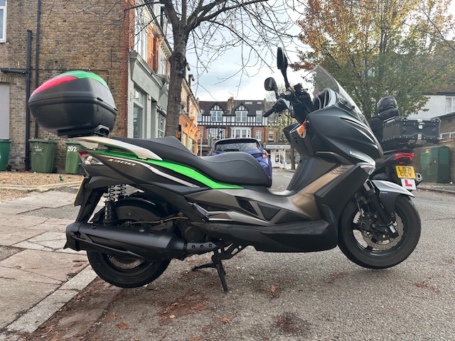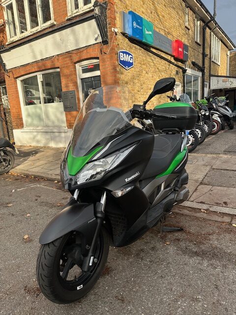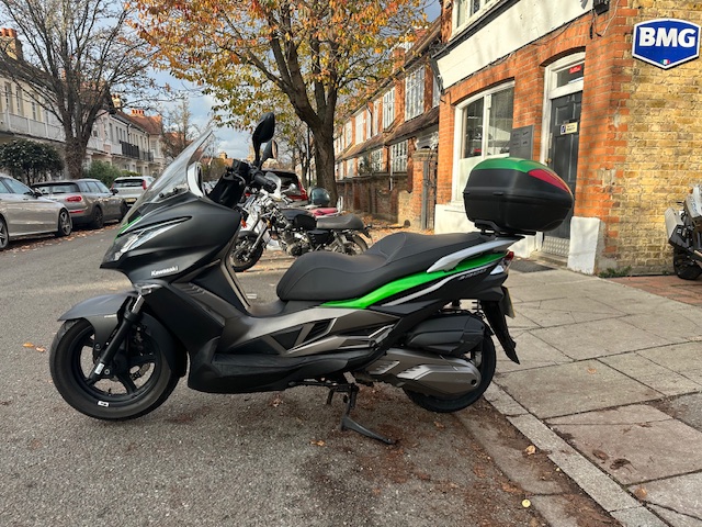 This J300 is in very nice condition and has a full service history. It has just had a full drive belt service carried out in the BMG service department. It runs and rides perfectly and has been fitted with heated grips, genuine Kawasaki Top Box and is also supplied with a green tinted touring screen. It has just been fitted with a new rear tyre, so is ready to be enjoyed.