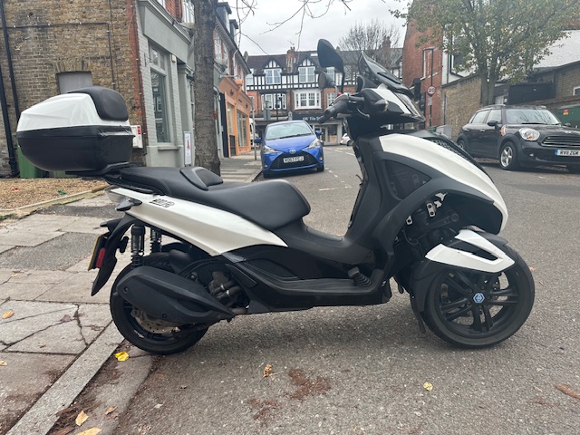 The MP3 300 can be driven on a full car licence and is Congestion Charge exempt.
